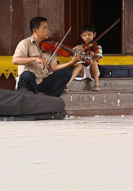 Suzuki Violin Book 1’s PDF fosters proper posture‚ bow hold‚ and left-hand technique.